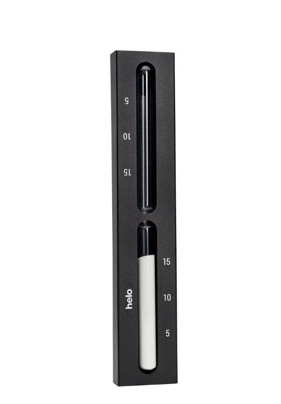 Tiimalasi on perinteinen ja tunnelmallinen tapa mitata saunassa vietettyä aikaa. Helo Brilliant -hiekkakello mittaa aikaa 15 minuuttiin asti. Selkeässä asteikossa on kätevät välietaipit 5, 10 ja 15 minuutin kohdalla, joten voit helposti seurata sopivaa löylyaikaa oman mieltymyksesi mukaan.